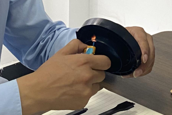 1、先把阻燃尼龍加工成5mm的薄片,然后用火點燃薄片,把薄片傾斜45°角,如果薄片在5s內(nèi)自己熄滅的話,那么這個就是V0級的。