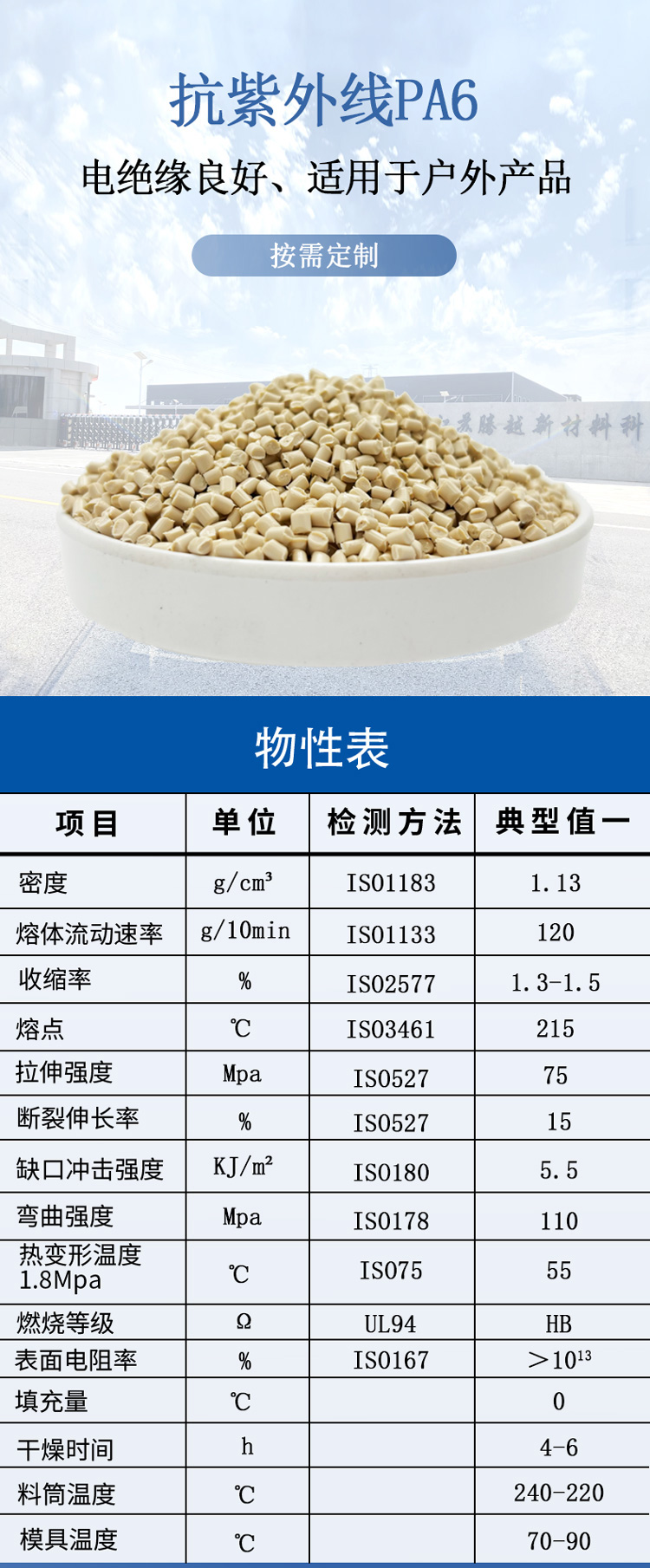 | 拉伸強度 | Mpa | ISO527 | 75 | 32 | 170 |
